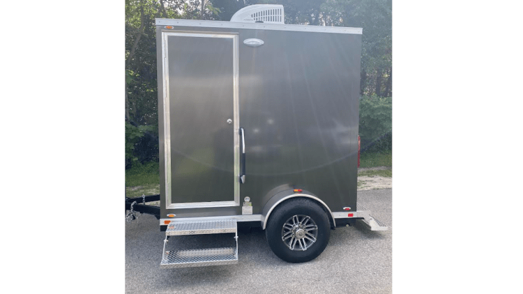 2 stall AC trailer restroom that has a HIS and HER private toilet. Great for any function going on.