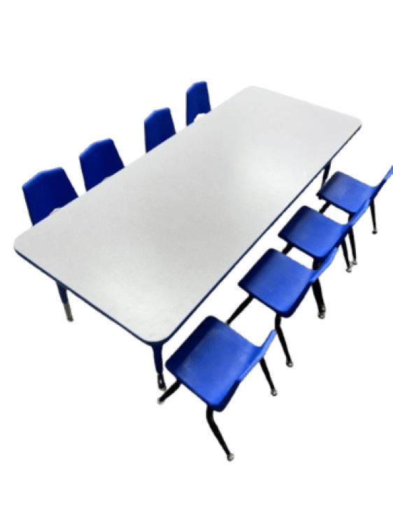 Perfect for children 4 and under. Rental comes with one (1) table and eight (8) chairs. Chair colors may vary. Tables are extremely heavy-duty and perfect for birthday parties, crafts, food tables, and any other time a children's table is needed!