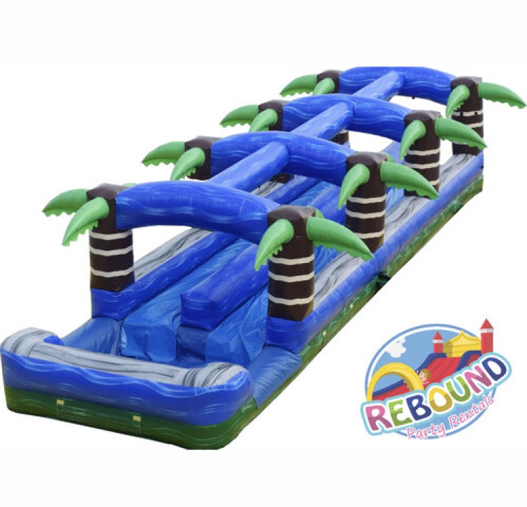 Experience tropical excitement with our Tropical Dual Lane Slip-N-Slide. Slide, glide, and race to the finish line in this thrilling inflatable water attraction, providing hours of refreshing entertainment.